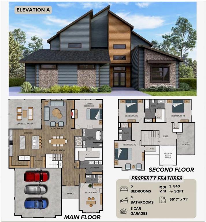 3840 Sq.ft · 5 Bedrooms · 4 Full Bathrooms